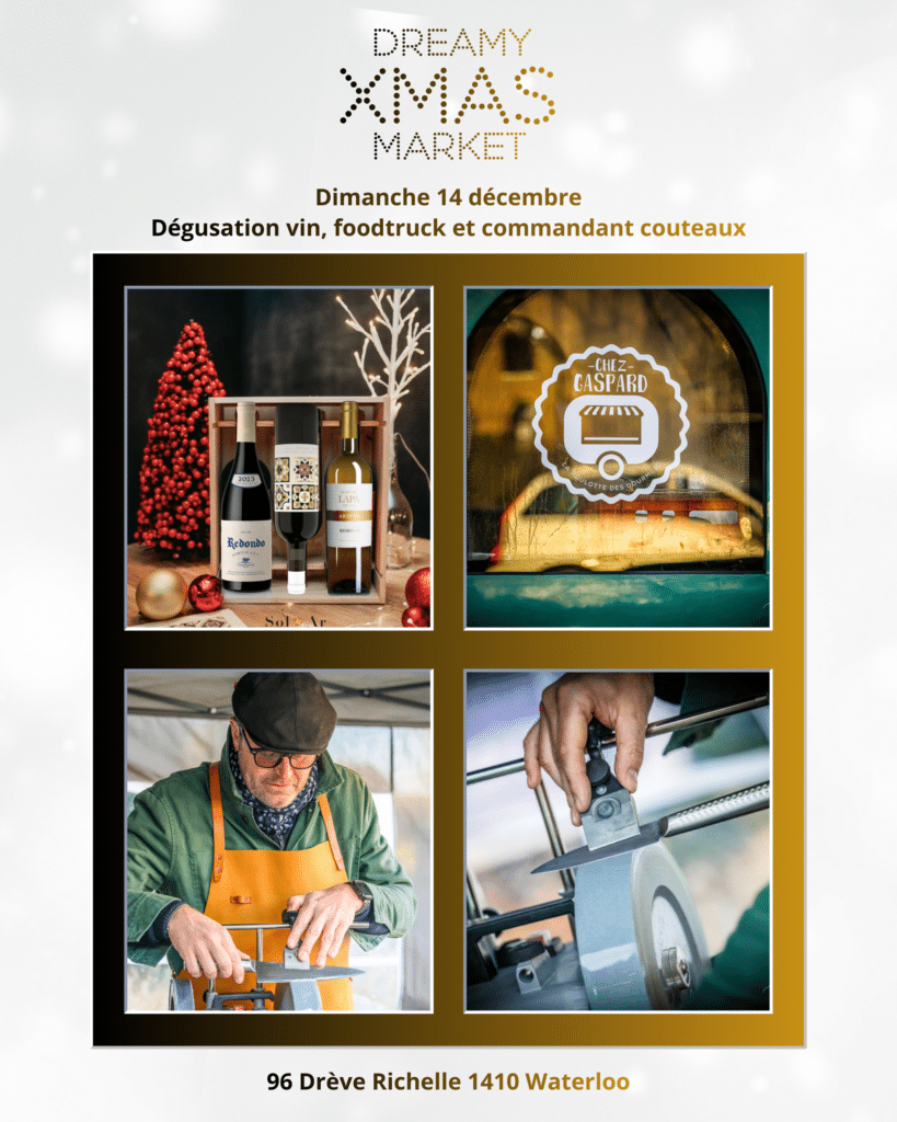 Une journée gourmande & festive avec dégustation commentée des vins portugais de The Solar 🍷, le Commandant Couteaux pour aiguiser vos outils 🔪 et le foodtruck Gaspard avec huîtres, croquettes et délicieuses gourmandises de fête 🦪✨
